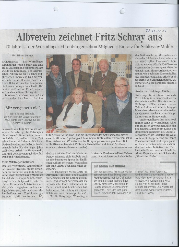 30.12.2015 Ehrung Ehrengauobmann Fritz-Schray