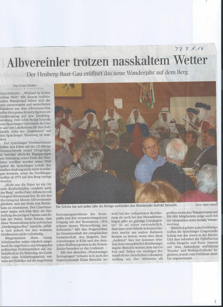 06.01.2016 Dreikönigstreffen Heuberg-Baar-Gau Dreifaltigkeitsberg