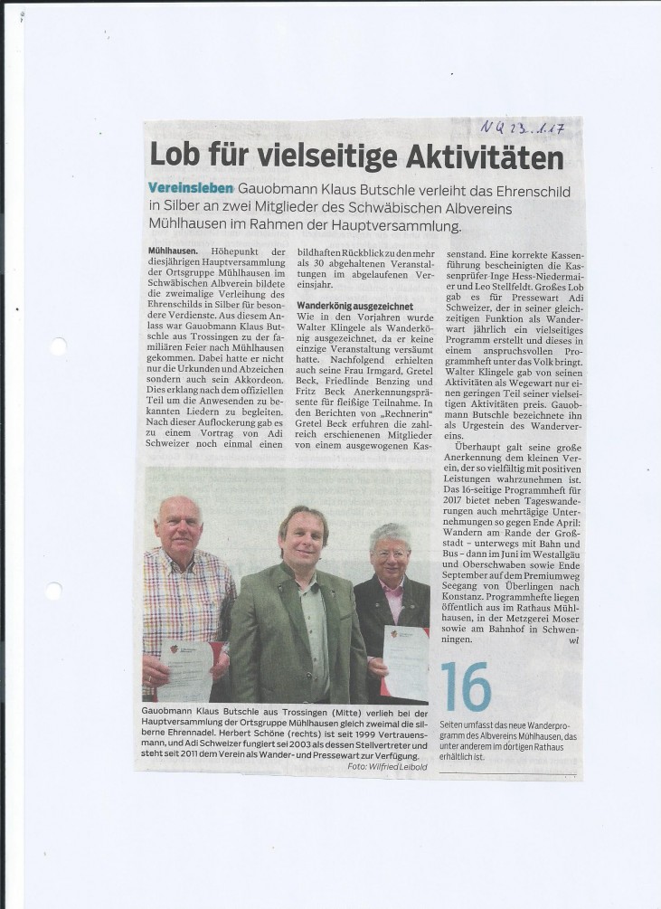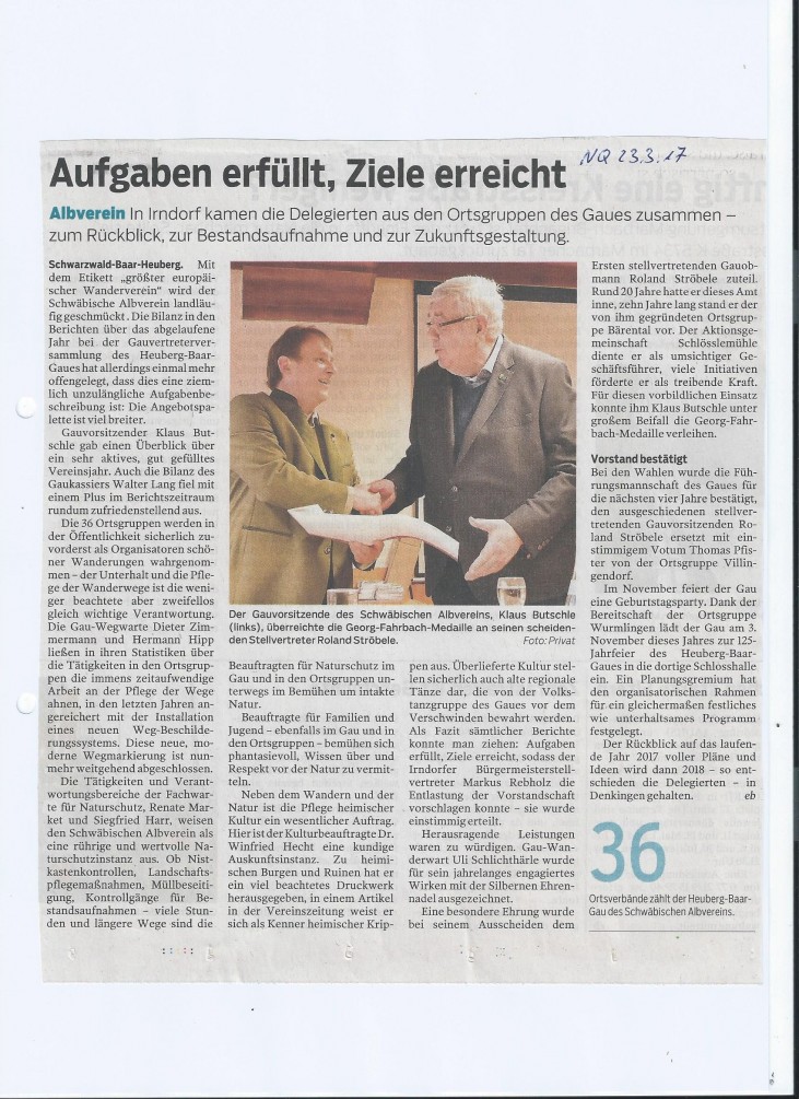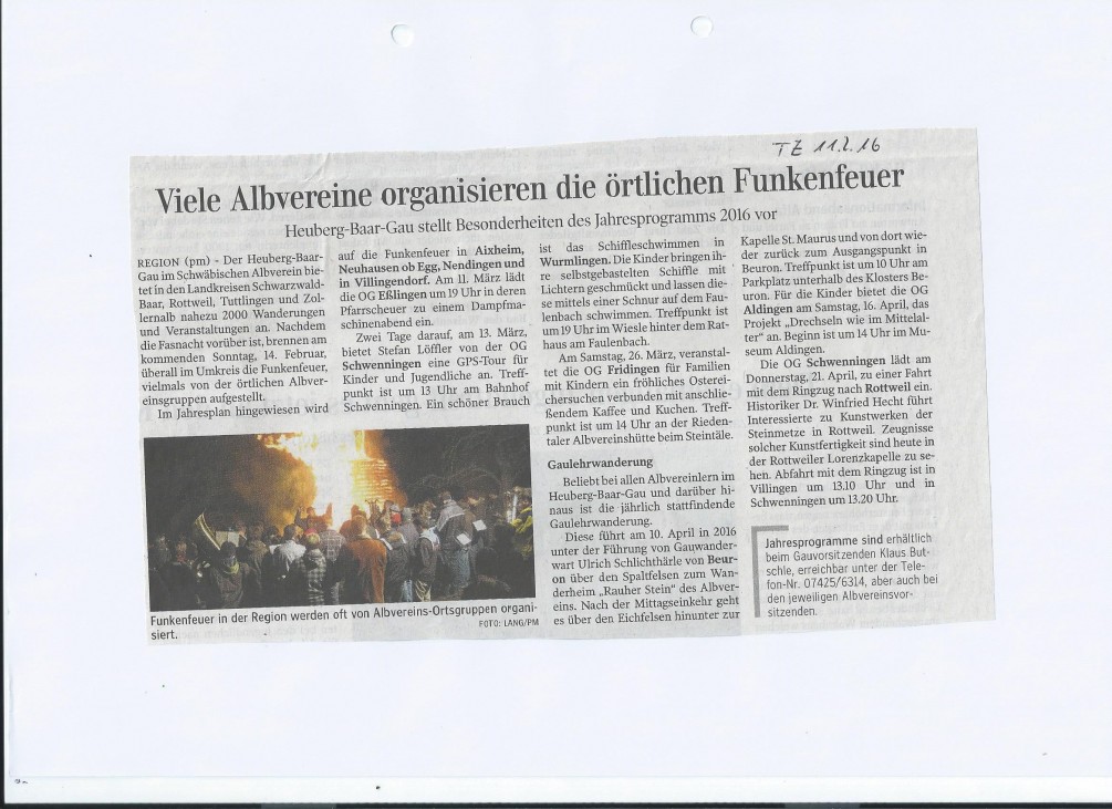 11.02.2016 Frühjahrsprogramm Heuberg-Baar-Gau