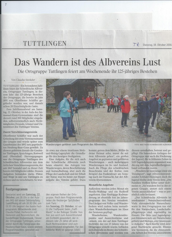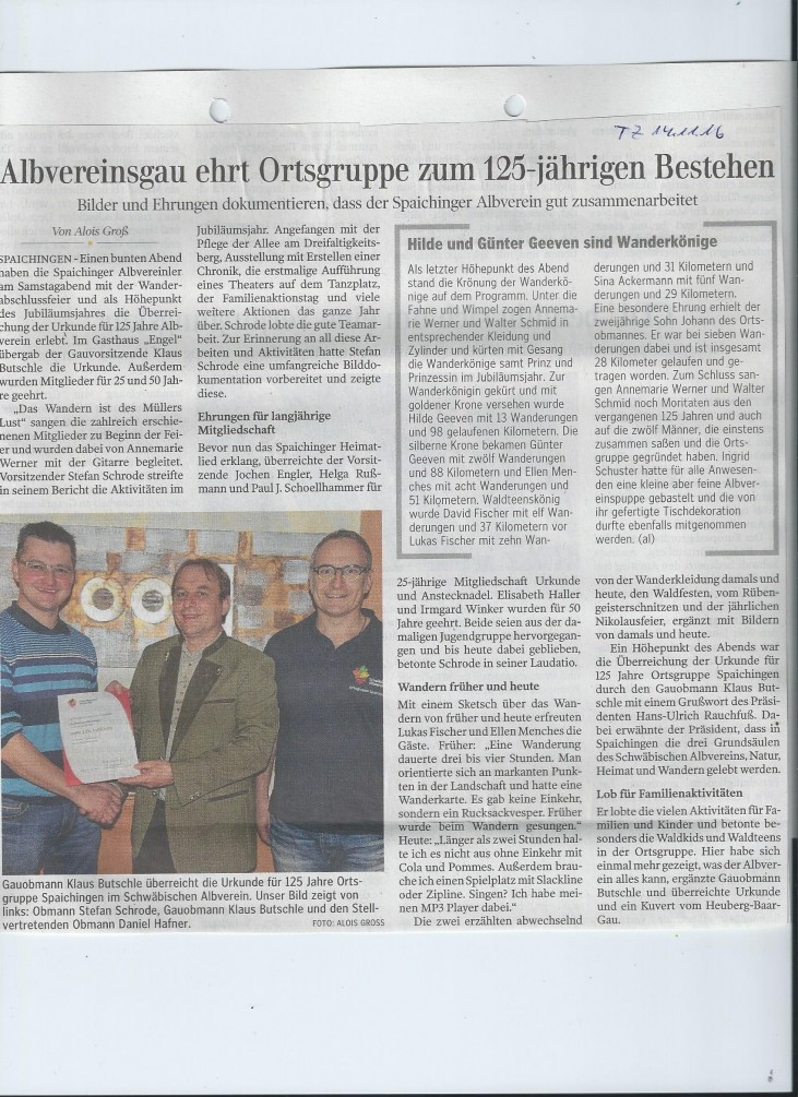 14.11.2016 Jubiläum 125 Jahre OG Spaichingen