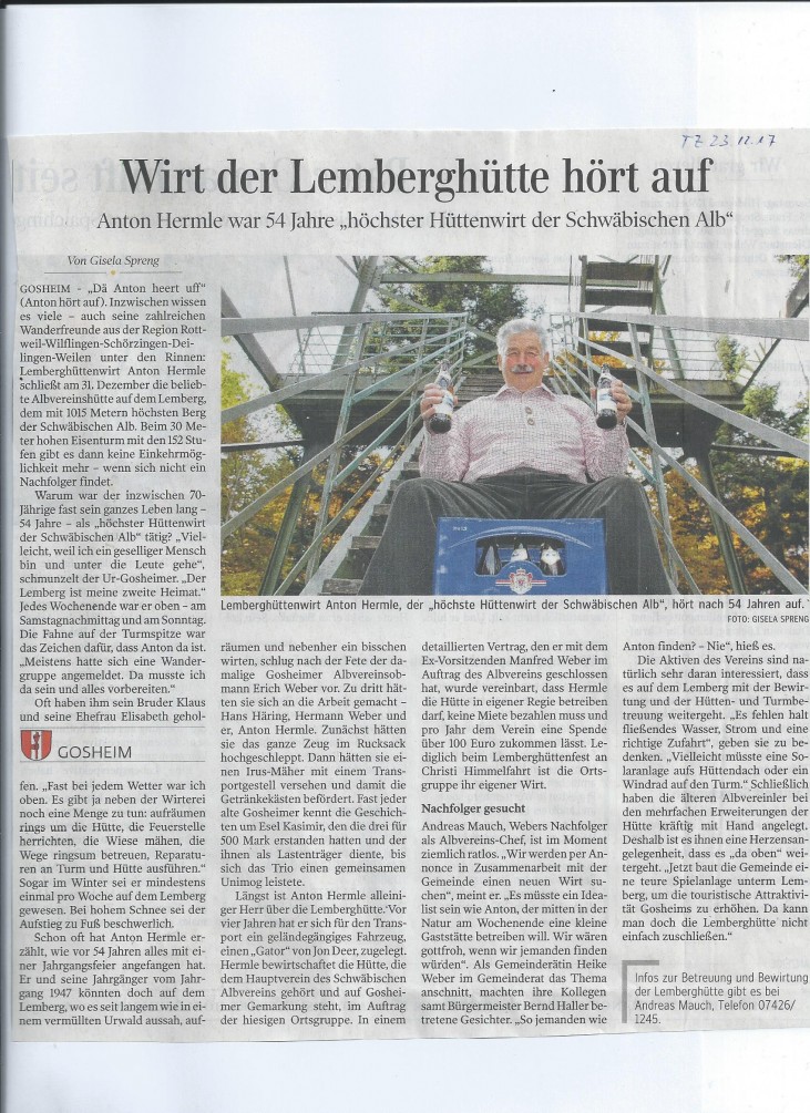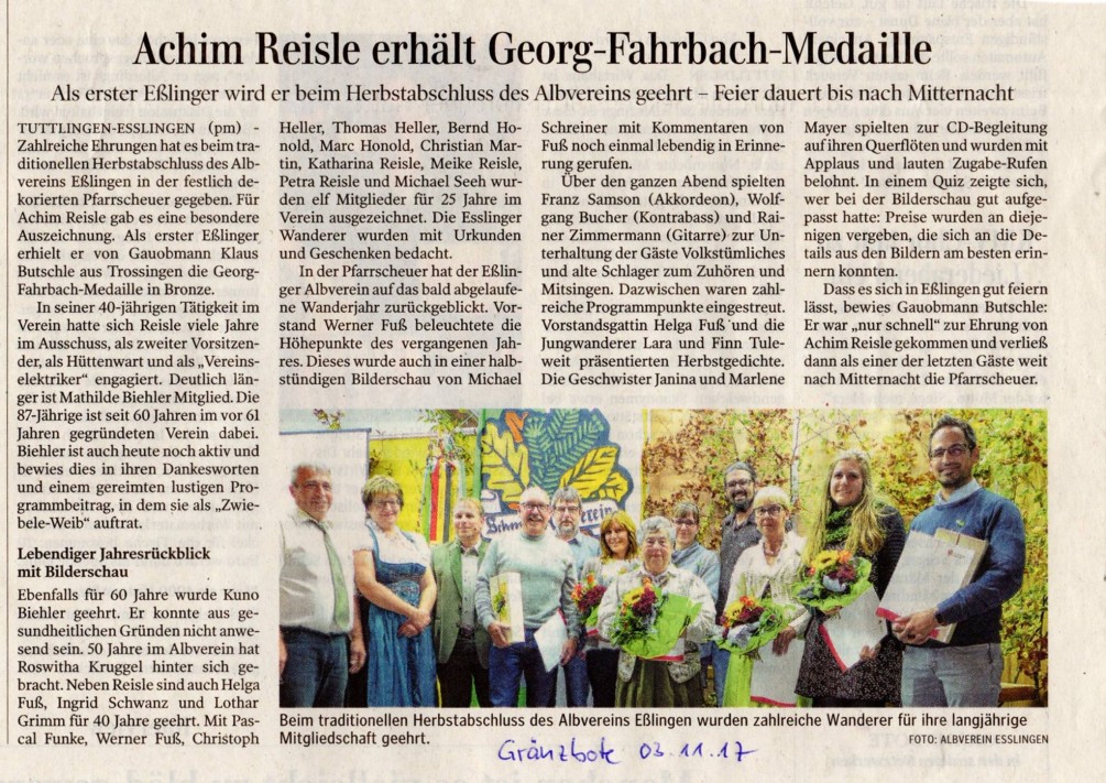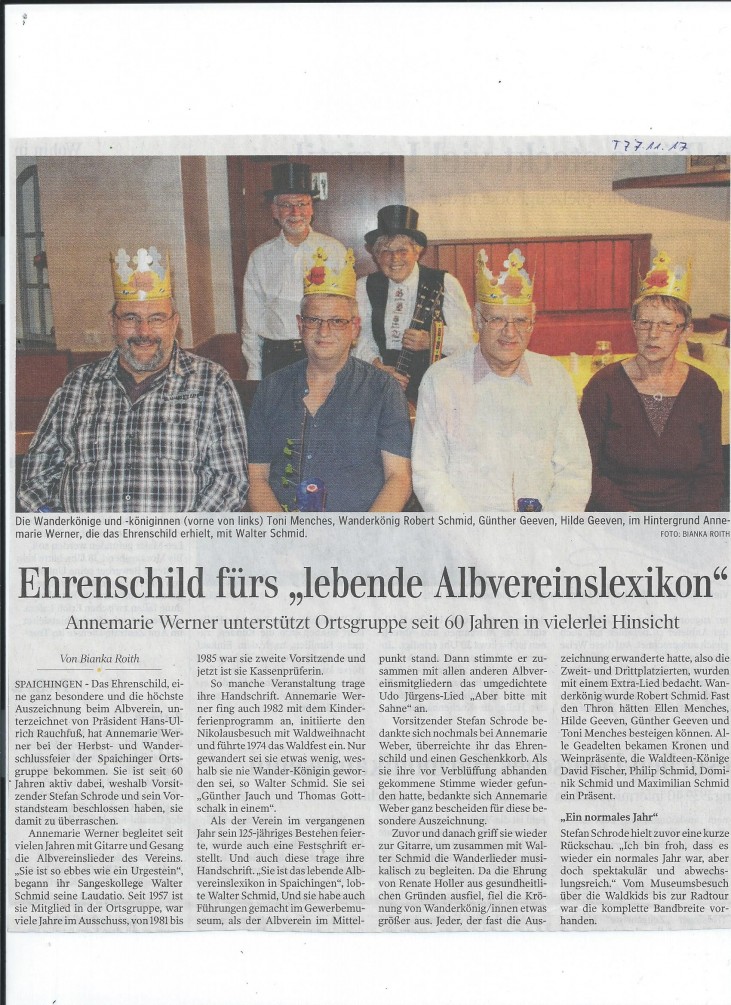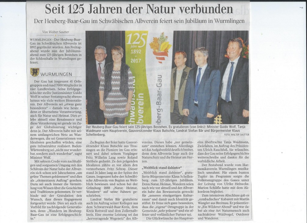 04.11.2017 Jubiläum 125 Jahre Heuberg-Baar-Gau Bericht Schwäbische