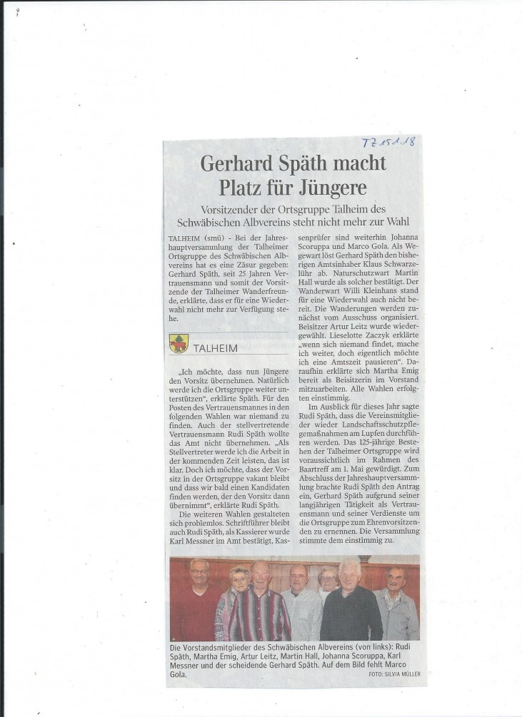15.01.2018 JHV OG Talheim mit Neuwahlen Vorstand