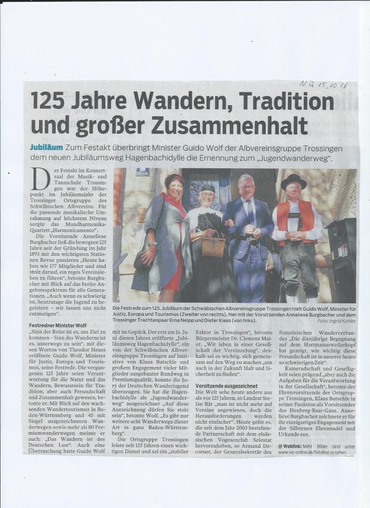 15.10.2018 Jubiläum 125 Jahre OG Trossingen