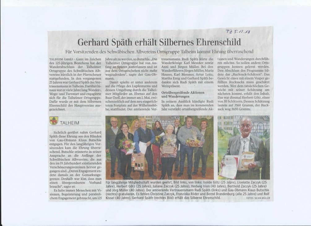 05.12.2018 Verleihung Ehrenschild Gerhard Späth OG Talheim