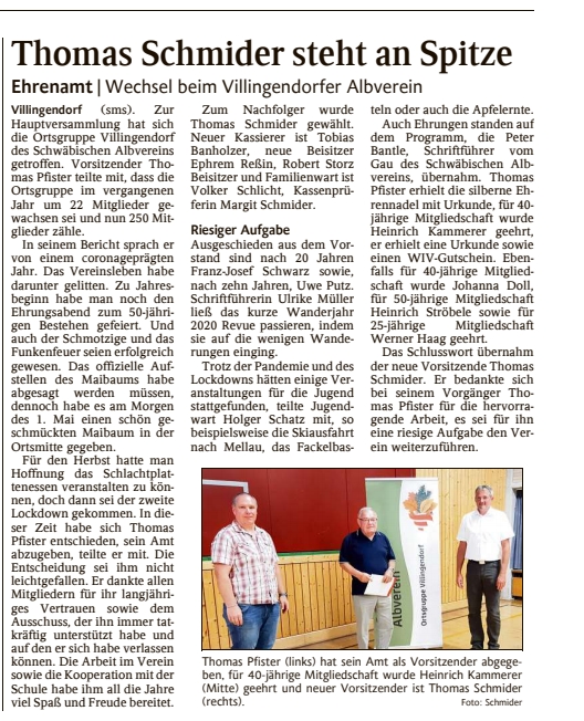 15.02.2016 JHV OG Schwenningen Neuwahlen Vorstand